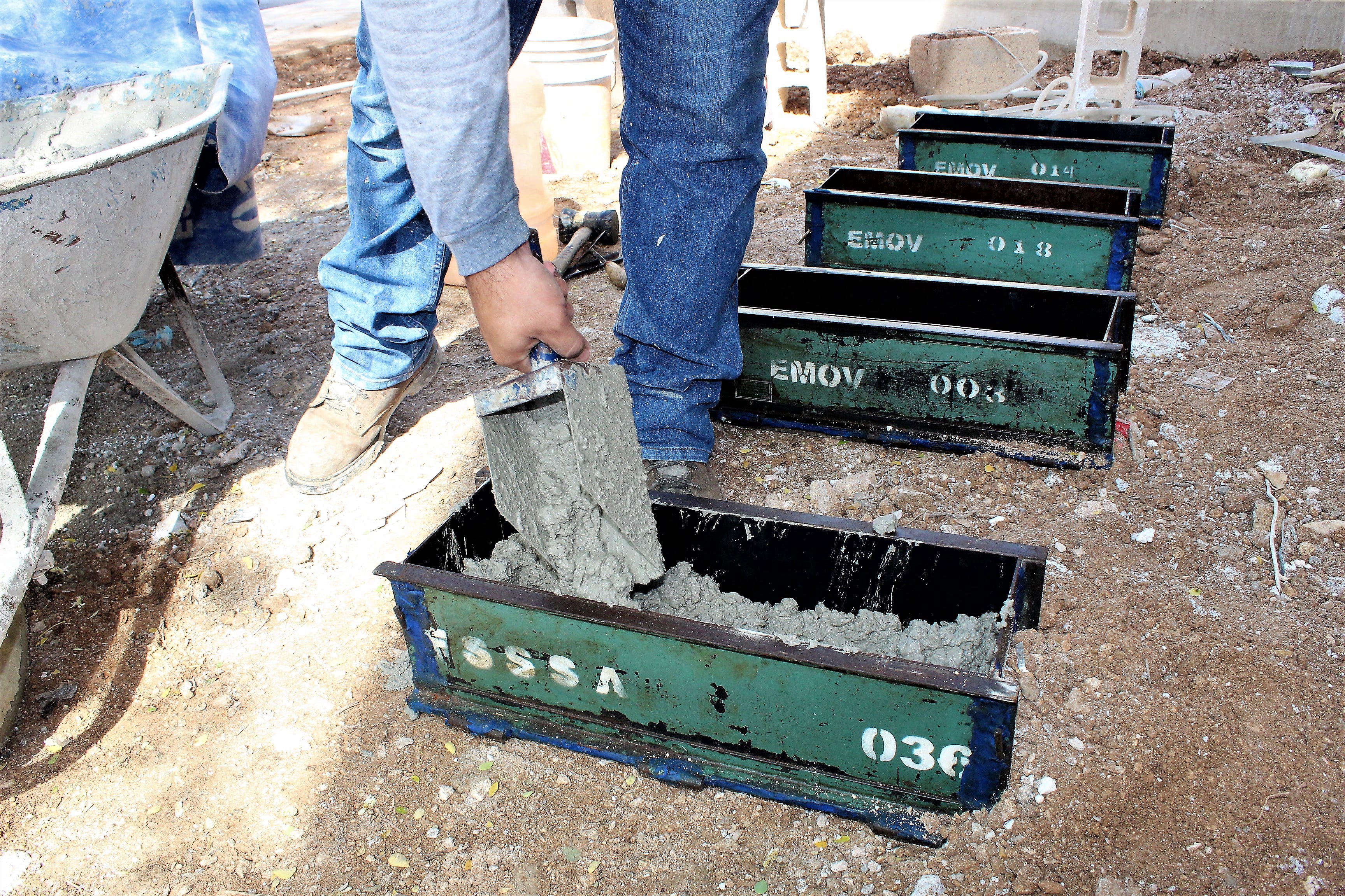 - Muestreo de concreto, determinación del revenimiento y elaboración de especímenes cilíndricos o vigas de concreto hidráulico para ensaye a la compresión o flexión, respectivamente